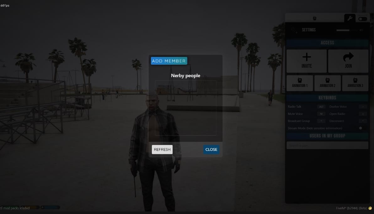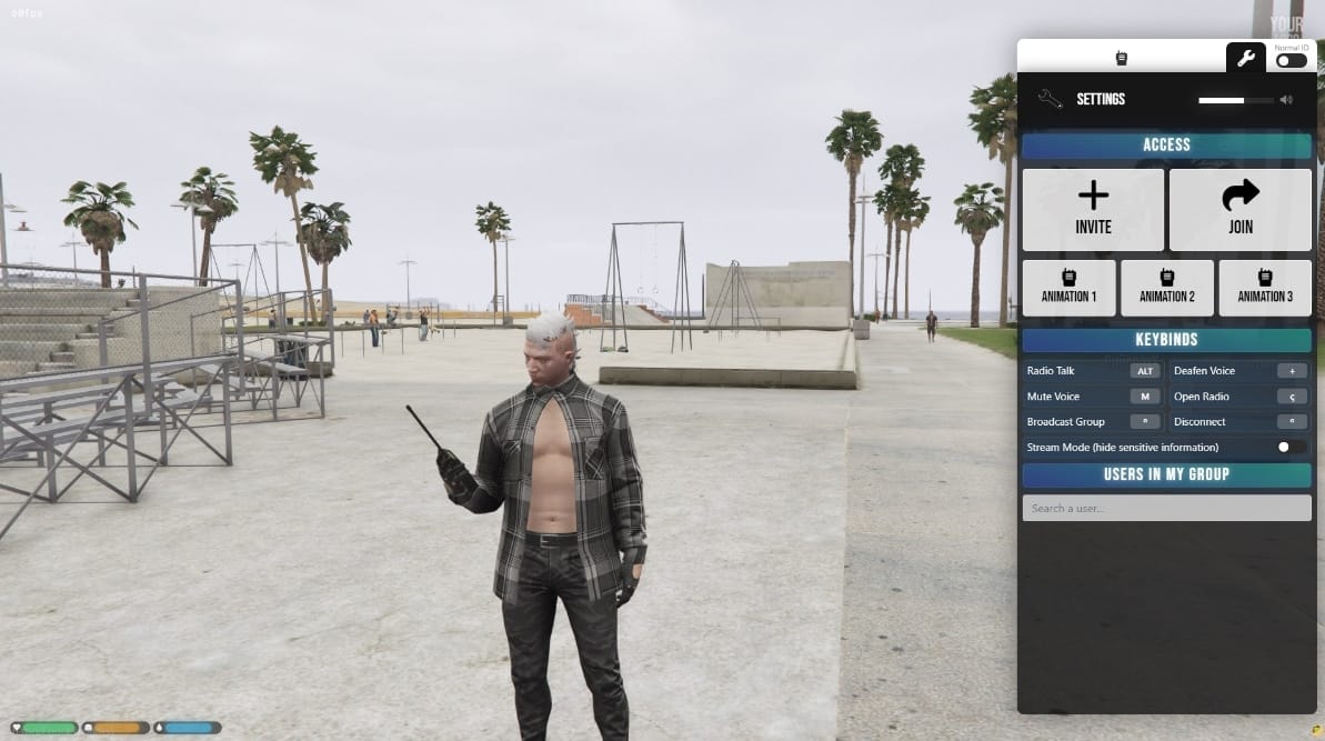 The comprehensive keybinds system gives players unprecedented control over their communication experience. Change the radio talk key to match your preferred setup, use mute and deafen controls to manage audio reception during intense scenarios, broadcast to your entire group with a single hotkey, customize the interface opening key, and disconnect quickly when privacy is needed. This level of customization ensures Origen Radio adapts to your gameplay style rather than forcing you to adapt to rigid controls.
